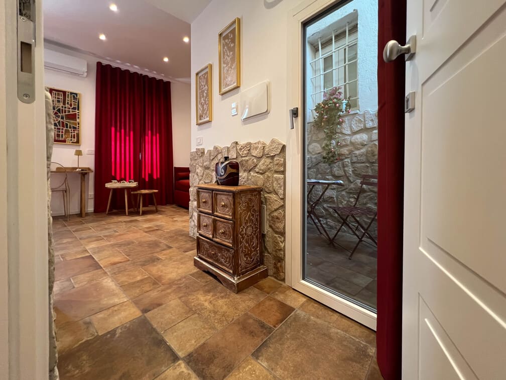 La Camera Corallo dispone di un balconcino e di un cortile interno privato, perfetto per gustarsi un momento di relax all’aperto. La dotazione comprende climatizzazione indipendente, Smart TV, frigobar, bollitore elettrico con tisane e snack, bagno in camera con finestra, materassi anallergici e finestre insonorizzate per un comfort assoluto .